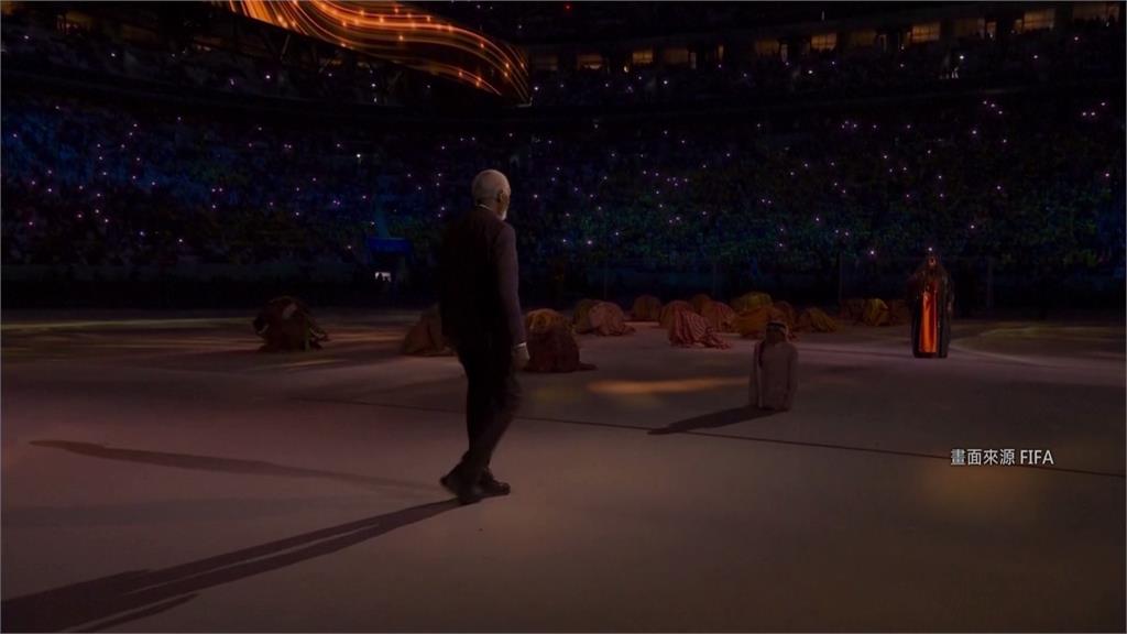 摩根費里曼和天生殘疾的穆夫塔引言開場。圖/翻攝自FIFA本屆世界盃開賽前爭議不斷,地主國卡達極力想透過開幕式跟賽事扭轉形象。是否成功,一個月後見真章。