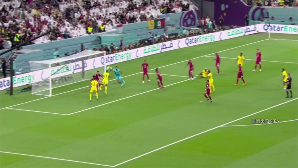 本屆世足開幕戰,由地主卡達迎戰厄瓜多。開戰才不到3分鐘,厄瓜多自由球吊入禁區,卡達門將未能成功解圍,厄瓜多隊長瓦倫西亞(Enner Valencia)頭槌一點,球應聲入網。