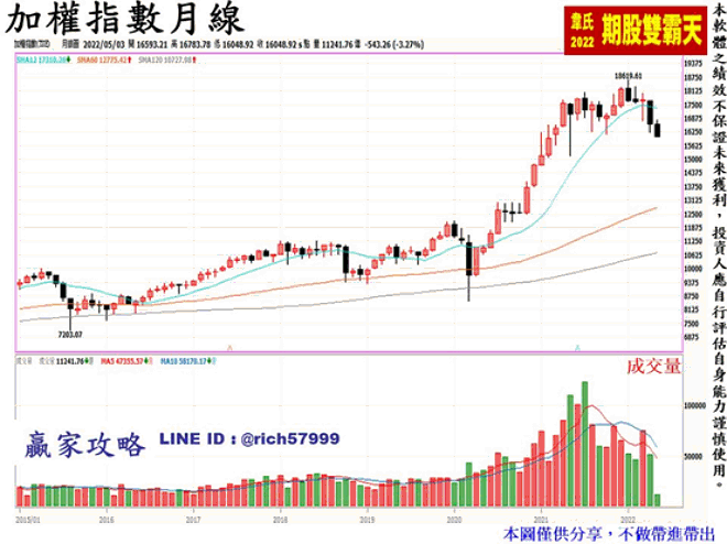 4月以來我已經一再提醒大家,從月K棒的角度來看,這是過去兩年多頭市場以來,第一次月K棒跌破年線,代表多頭市場已經反轉向下。
