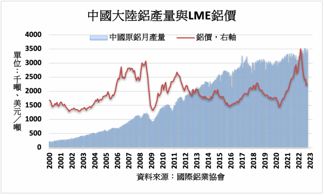 中國國家統計局公布的數據則顯示,10月份,大陸鋁產量345萬噸,為連續第8個月增長;較前月增長0.9%,較去年同期則是增加9.5%,主要因為煉鋁廠的生產從去年的限電危機中持續恢復,以及海外市場的鋁產品需求強勁的影響。今年1-10月,大陸未鍛軋鋁及鋁材出口量年增25%至567.6萬噸。1-10月,大陸鋁產量年增3.3%至3,333萬噸。