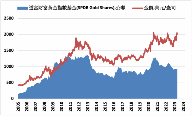 世界黃金協會報告表示,2023年3月,全球黃金ETF(交易所交易基金)持倉增加32公噸,為10個月來首度增加,主要因為銀行危機、經濟擔憂,以及地緣政治局勢持續緊張的影響。3月底,全球黃金ETF總持倉為3,443.8公噸,管理資產規模2,196億美元。相比2022全年,黃金ETF持倉減少110公噸,因升息以及美元上漲令投資需求減弱的影響。